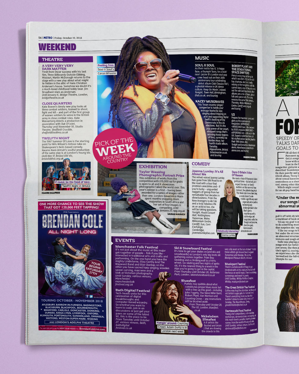 The role demanded strong typographic judgement and layout problem-solving, ensuring editorial content remained clear, engaging and well-paced while integrating complex ad shapes seamlessly. Each page balanced consistency with flexibility, maintaining Metro’s visual identity while responding to the practical constraints of daily newspaper production.